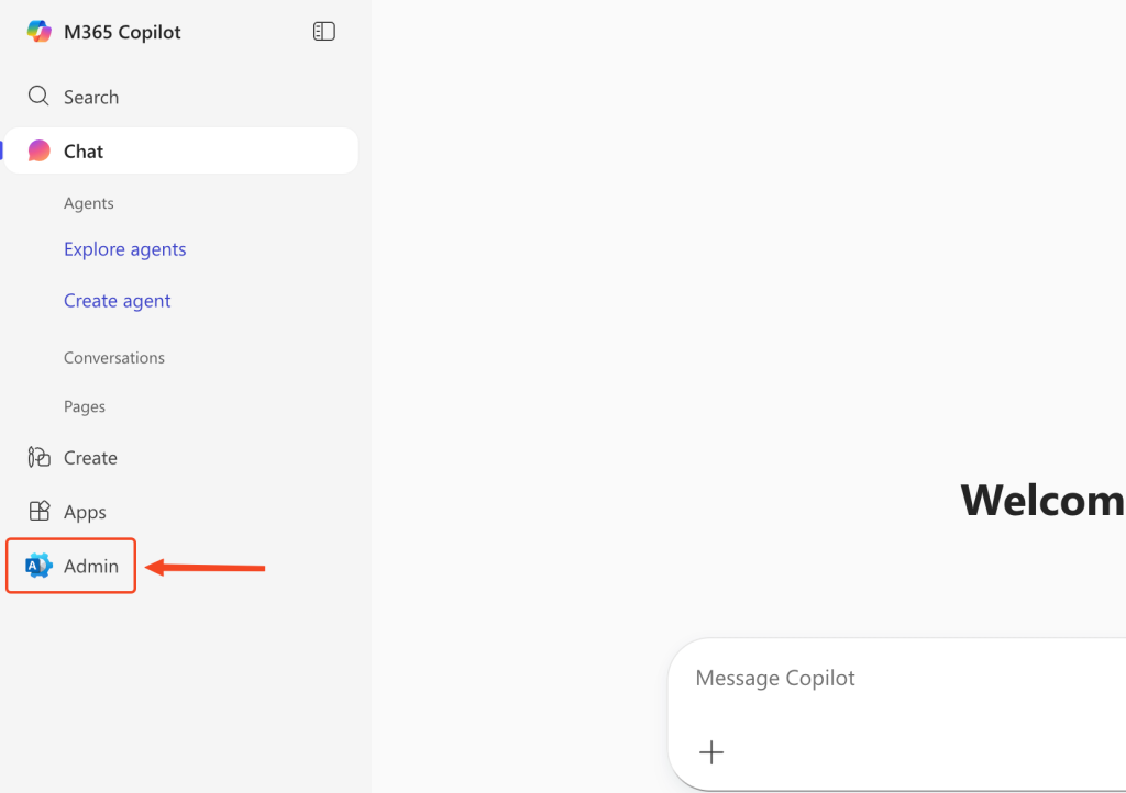 Once logged into your Microsoft 365 account, locate and click on Admin in the left-hand navigation menu.