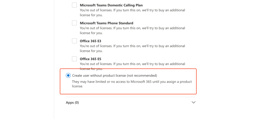 Select Create a user without a product license, then click [Next].