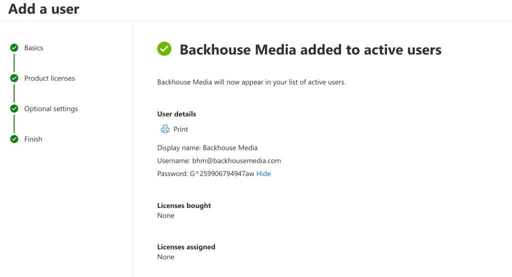 You should now see the confirmation message: “Backhouse Media added to active users.”